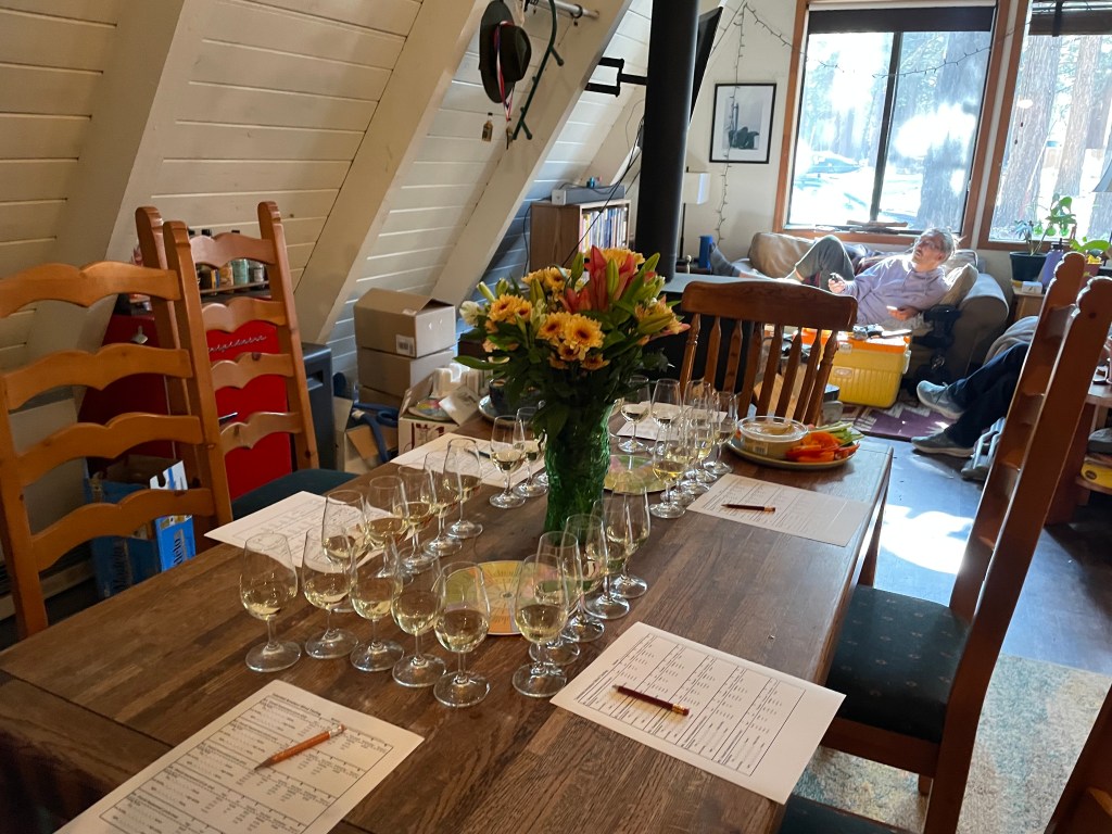 I set up a blind tasting in Mammoth Lakes, CA, to get input from about a dozen subscribers on these wines. The tasting was intended to get overall impressions of the wines, without any bias from seeing a label, pricetag, or winemaker tasting notes. I also wanted to get some feedback on the wine with food (some basic cheese with crackers, and a simple vegetable crudité with spicy humus).